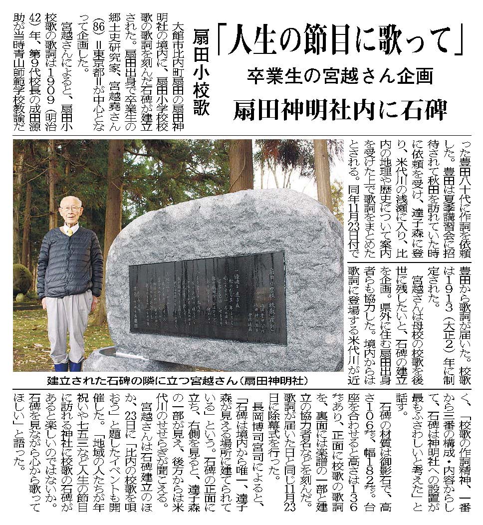 2025年7月23日 / 最終更新日時 : 2025年12月3日 o-shinmeisha お知らせ NEW 北鹿新聞「扇田神明社内に石碑」掲載記事 2025年11月29日 北鹿新聞へ「扇田神明社内に石碑」の記事が掲載されました。